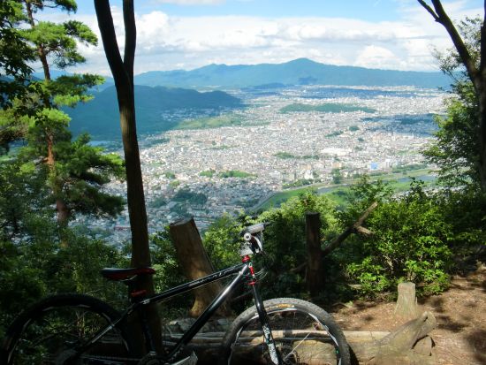 ここが山頂! 右に琵琶湖、左に山科市内と京都市内、京都タワーや御所も見えます。今日はちょっとガスってたのでクリヤーではなかったが十分きれい。